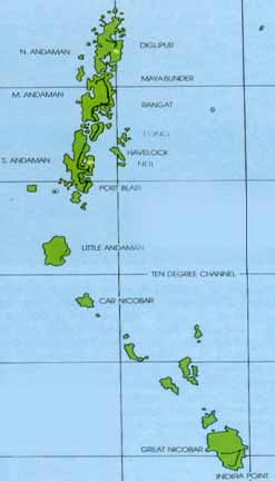 The Andamans are a chain of 184 odd islands in the Andaman sea at approx 1100 Kms to the south of Kolkata. The largest among them, The Andaman Island is 355 Kms long and 60 Kms wide. There was a time when ancient tribes lived here. Some of the natives it is said bore a remarkable resemblance to the aboriginal tribes of Australia. Today some tribes have receded into the deep forest while others have been resettled. Port Blair, it's principal port, is a picturesque and bustling town, full of greenery. It is well connected to the main land by regular passage of ships and scheduled flights from KolKata and Madras. Different communities are living in harmony and use hindi as their language.