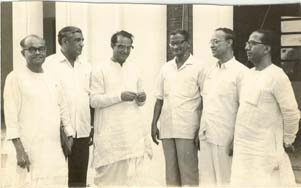 Photograph from Left to Right: Benoy Bose, Khushiram Mehta, Vishwanath Mathur, K. R. Ganesh (M.P. for A & N), Fakir Sen, Bangeshwar Roy.