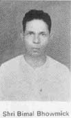 Born 1918, rangpur, Bangladesh, s/o Late Abala Mohan Bhowmick . Connented with Jugantar Party. Convicted to 6 years R.I. under Arms Act in 1934. deported to the Cellular Jail, Andamans. During his trial, the police not only harrased his family but also caused extensive damage to his house. Participated in the second hunger strike. Released in 1939. Total jail period more than 5 years.
